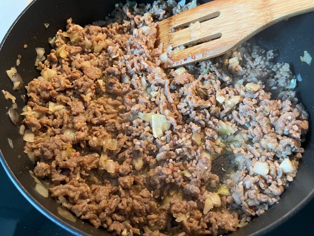 In a large skillet over medium-high heat, brown and crumble Italian sausage about 5-8 minutes. Add onion and garlic and cook for an additional 2-3 minutes or until some of the onion begins to turn opaque (no need to cook onion completely at this point). Drain grease from skillet.