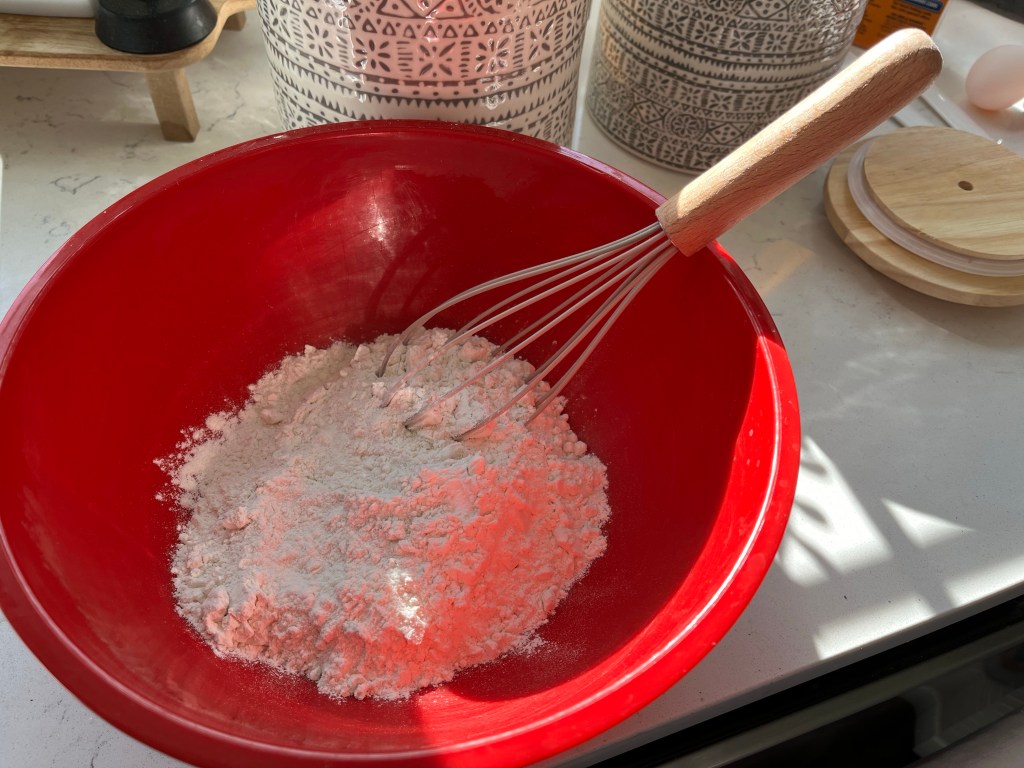 - In a separate smaller bowl, combine the flour, baking soda, and salt. Stir with a whisk to break up any clumps. Add half of this mixture to the butter/sugar mix and blend on low speed just until incorporated. Add the other half and blend just until mixed together.