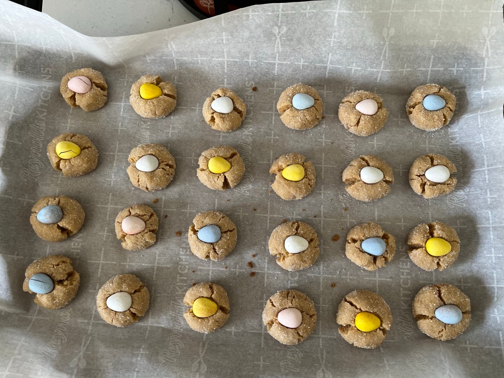 - Immediately, gently press a Cadbury Mini Egg into each cookie. The edges will crack and that’s what you want! Let the cookie sit on the cookie sheet for about 15 minutes. Enjoy them warm or room temperature! Store them in an airtight container once cooled. Happy Easter!