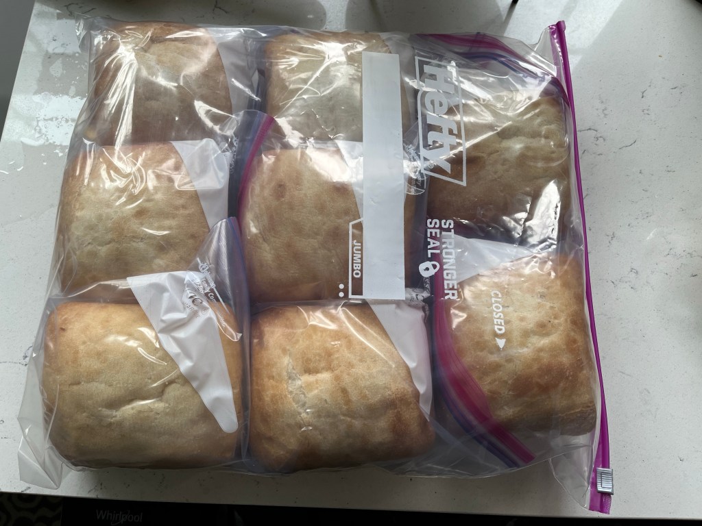 - 8 Ciabatta rolls (I found them in packs of 4, so I used 2 packs-some are smaller than others, but these happened to be fairly large, so adjust your recipe accordingly)