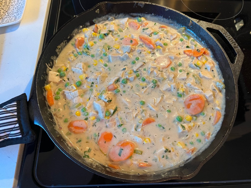 - Once rice is nearly finished, make a roux in a small pot with the remaining butter, flour, milk, and cream. Melt the butter slowly on medium, then slowly add the dairy products. Slowly mix flour into the melted butter, cream, and milk, and allow to thicken.