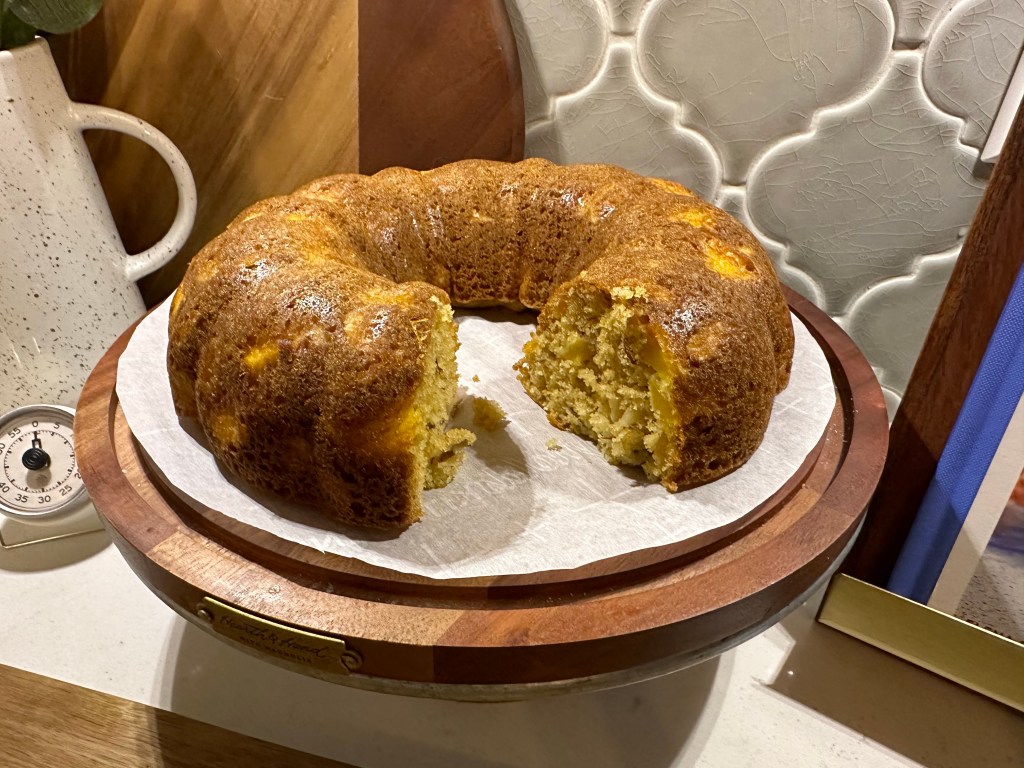 I had mangoes that I completely forgot about and knew there was no way we’d be able to eat them before they were overripe, so I did what anyone would do… turned to the internet for a bundt cake recipe. I figured that might be the easiest way to use them. I adapted my recipe from one I found from Goodie Godmother. Check out the original! I didn’t make any glade since mango is so naturally sweet, but it would be excellent with a glaze, so I’ll include that in my recipe as well.