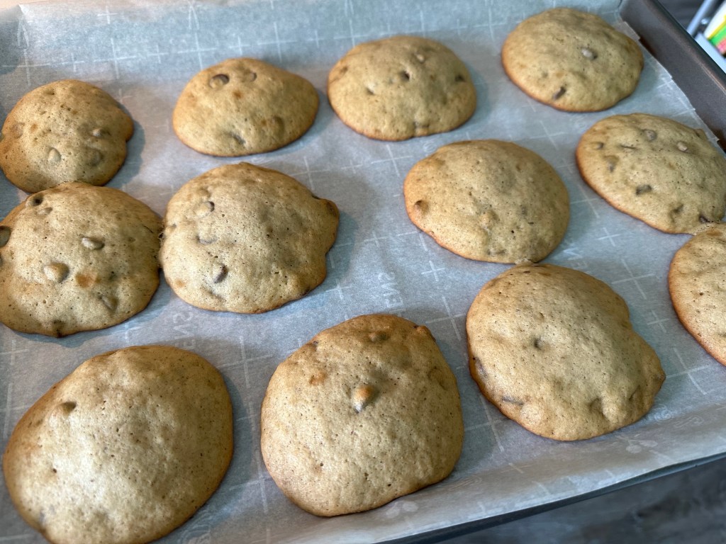- Drop in dollops onto a parchment paper-lined baking sheet. Bake for 11 to 13 minutes or until nicely golden brown. Let cool on wire racks before serving.