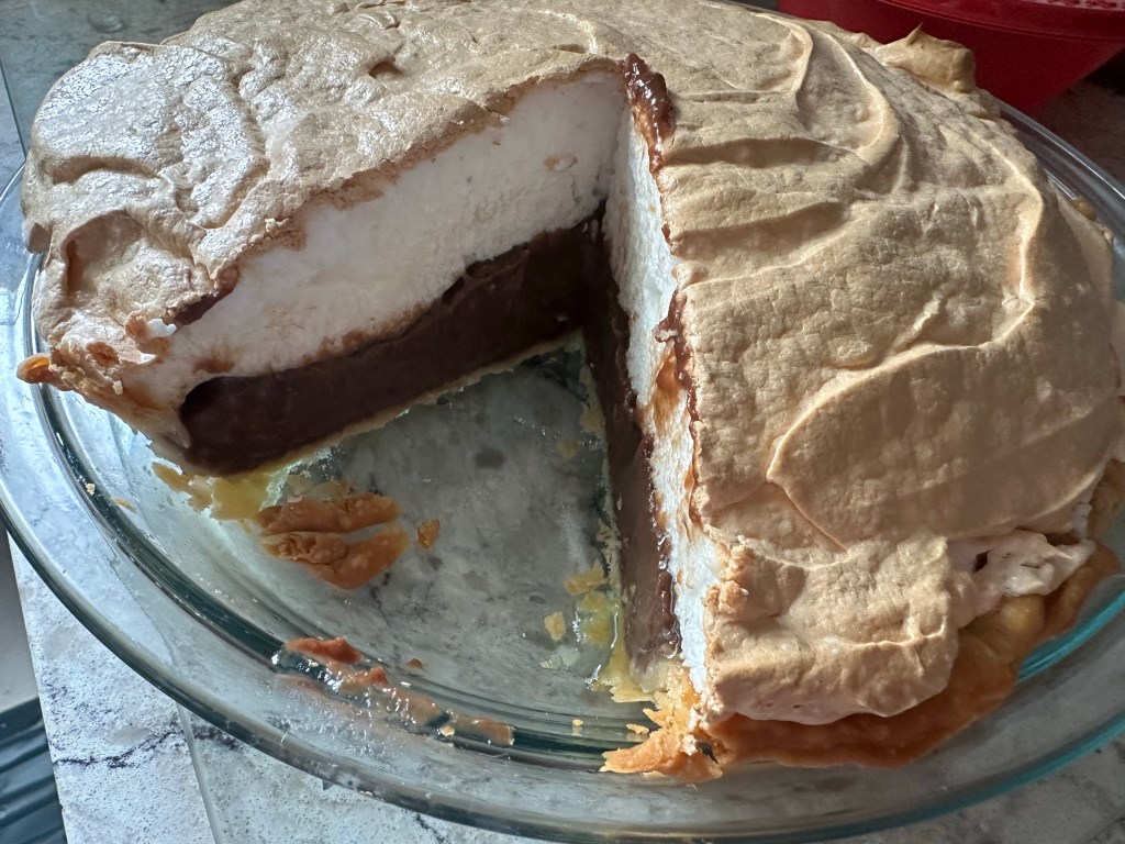 I have honestly never tasted anything quite like my grandma’s chocolate pie. Nothing has ever topped it, but this is the closest recipe I’ve found! No, I didn’t make the crust, but the rest was homemade and the closest I’ve had to her pie. I’ve made crusts in the past and honestly, for the work it takes to make them I feel that store bought crust will do. Enjoy!