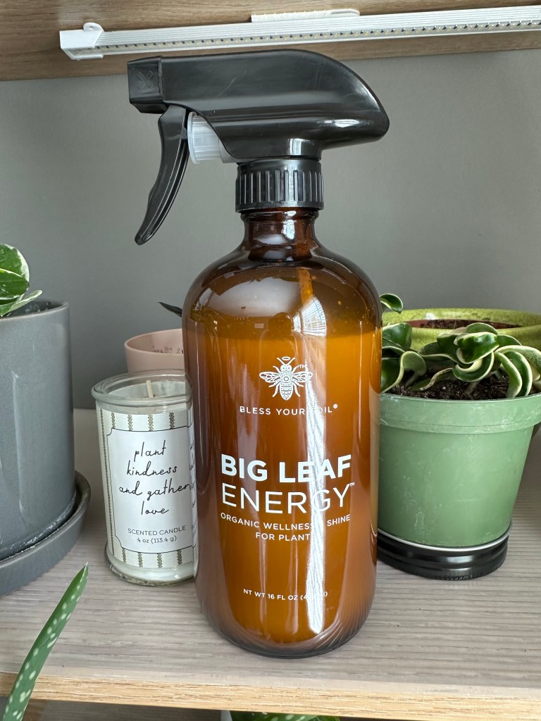 I treat my plants with Big Leaf Energy from Bless Your Soil. It’s made with a blend of organic Neem and other oils to help plants thrive pest and fungus free. Shake the bottle well and spray on a paper towel. Wipe the front and back of each leaf of the plant well and spray on all stems and stalks to ensure the fungus will be treated.