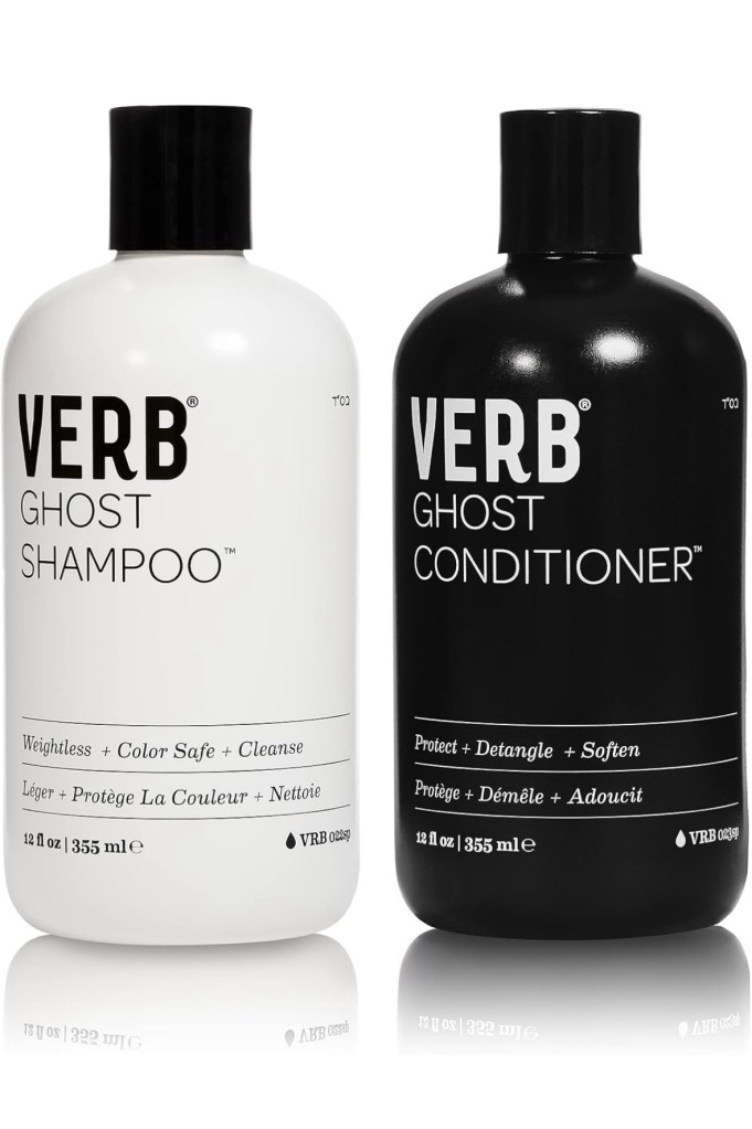 After thoroughly rinsing, apply a hair mask. I love Verb products and prefer their Ghost Hair Mask for its silky, light feel.