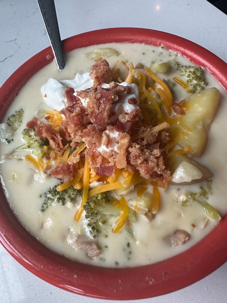 I love chicken soup and I particularly love it when it’s easy! This recipe has it all-potatoes, creamy broth, bacon, chicken, vegetables. It’s the perfect full-of-flavor soup. The best part? Rotisserie chicken makes it easy for a weeknight.