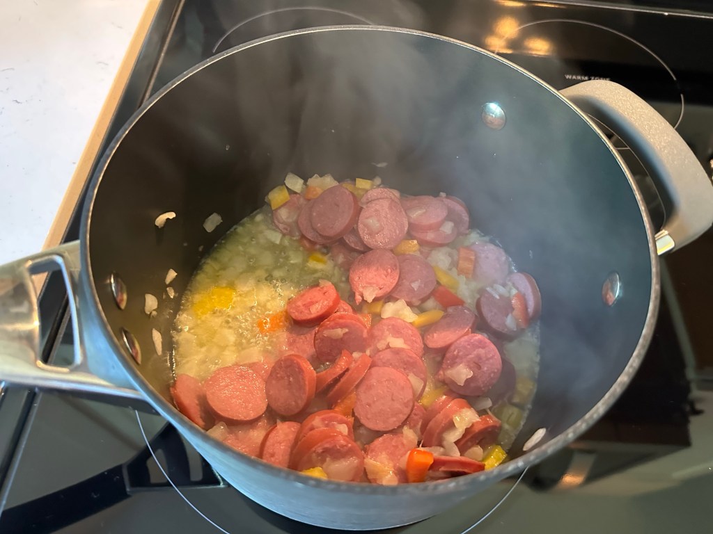 - In a bowl, separate and add 2 egg yolks and save egg whites in another bowl for later. Mix and beat eggs with 2 1/2 cups milk. Add to sauce pan. Also add 4 Tbsp butter. Stir until well mixed.