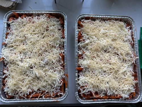 - Add remaining mozzarella to pasta mixture and bake in oven 20-25 minutes until heated through.